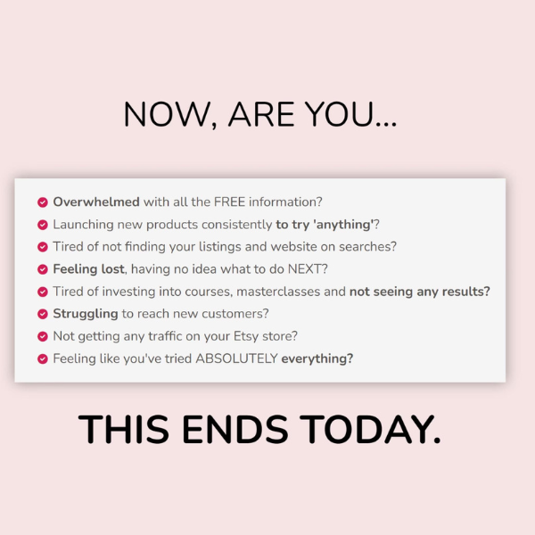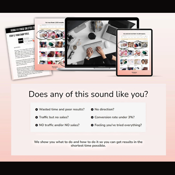Well... it was me too 2 years ago, trying to get my hands on any free/paid resources possible to understand how the Etsy Algorithm works. The only thing I wanted was to get traffic to my store, so I could start generating the sales I deserved.
